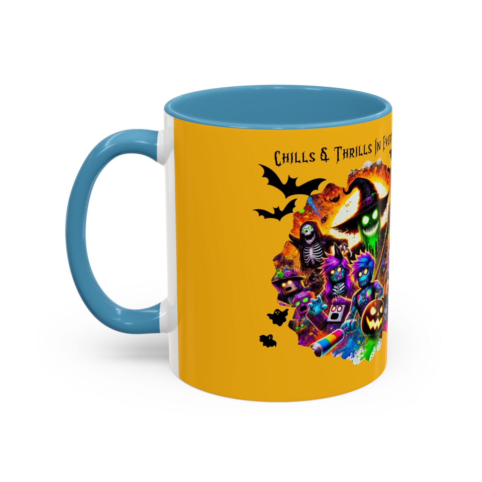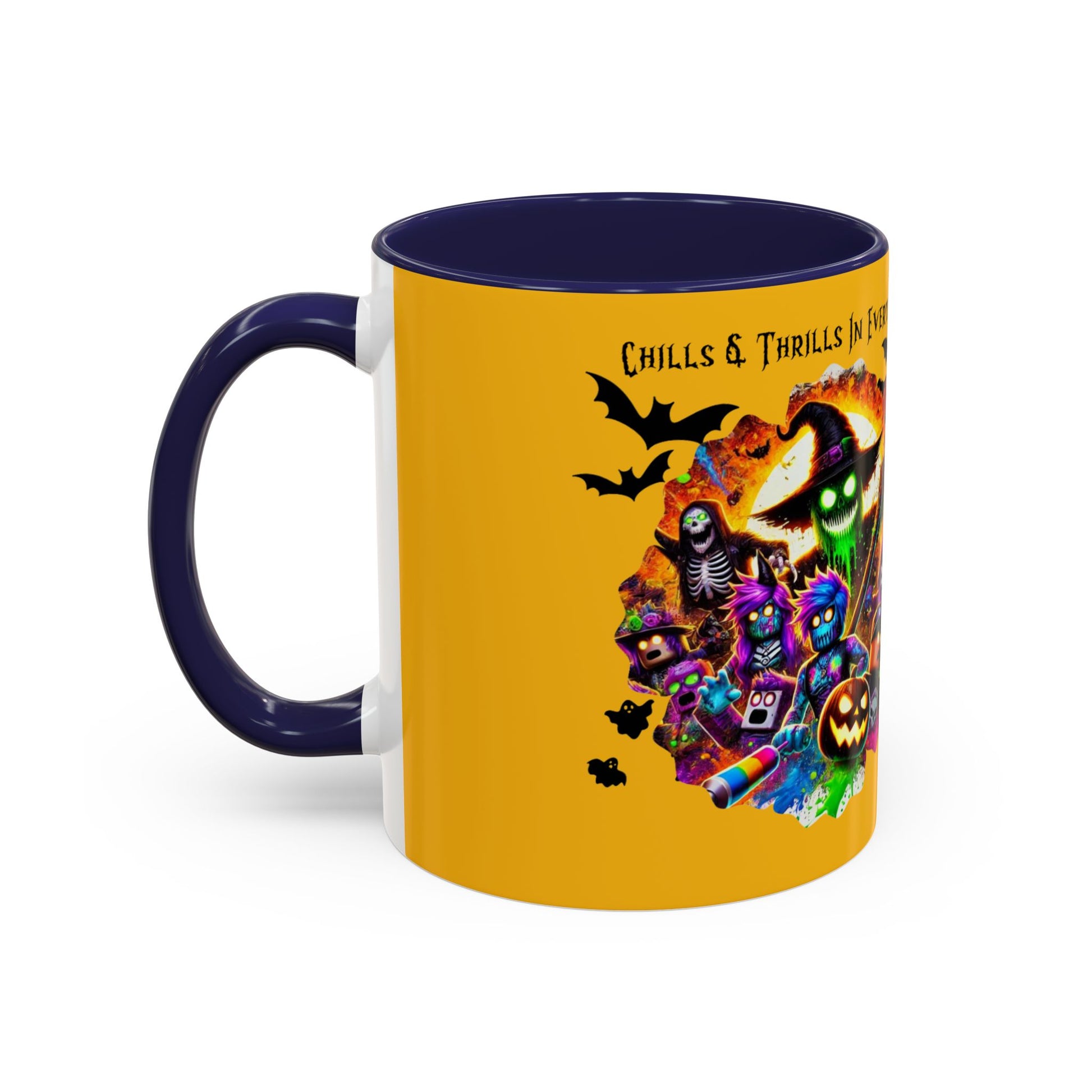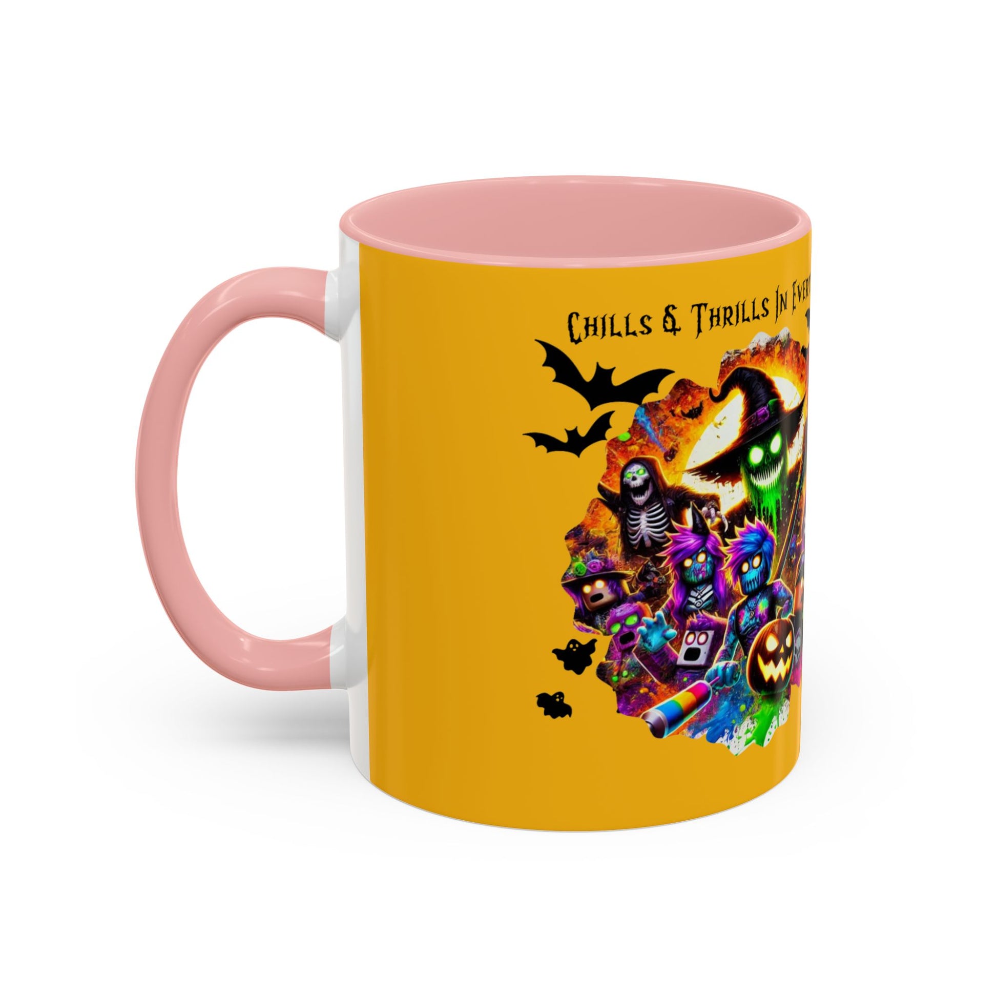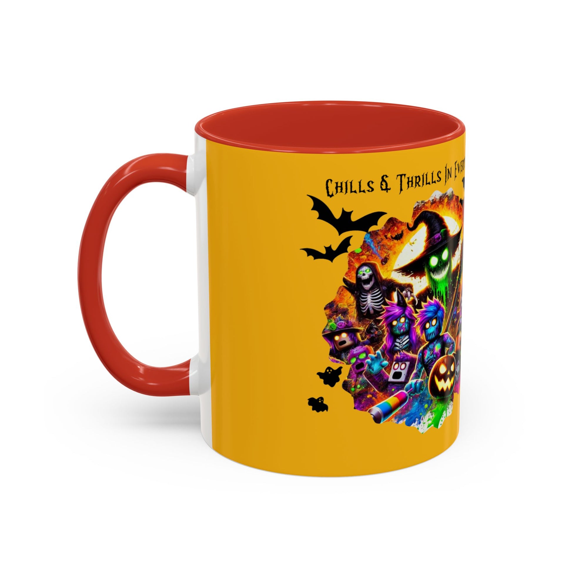 Meet your next favorite morning companion, the accented ceramic Halloween mug. This Halloween mug brings the perfect blend of style and functionality to elevate your coffee or tea ritual. Available in two generous sizes, 11oz (0.33 l) and 15oz (0.44 l), this Halloween mug offers ample space for your favorite brew. Made with white ceramic and sporting a sleek glossy finish with eye-catching contrast, this Halloween mug is a bliss both to use and to look at. The ergonomic C-shaped handle provides a comfortable grip, while the lead and BPA-free construction guarantee peace of mind with every sip.
